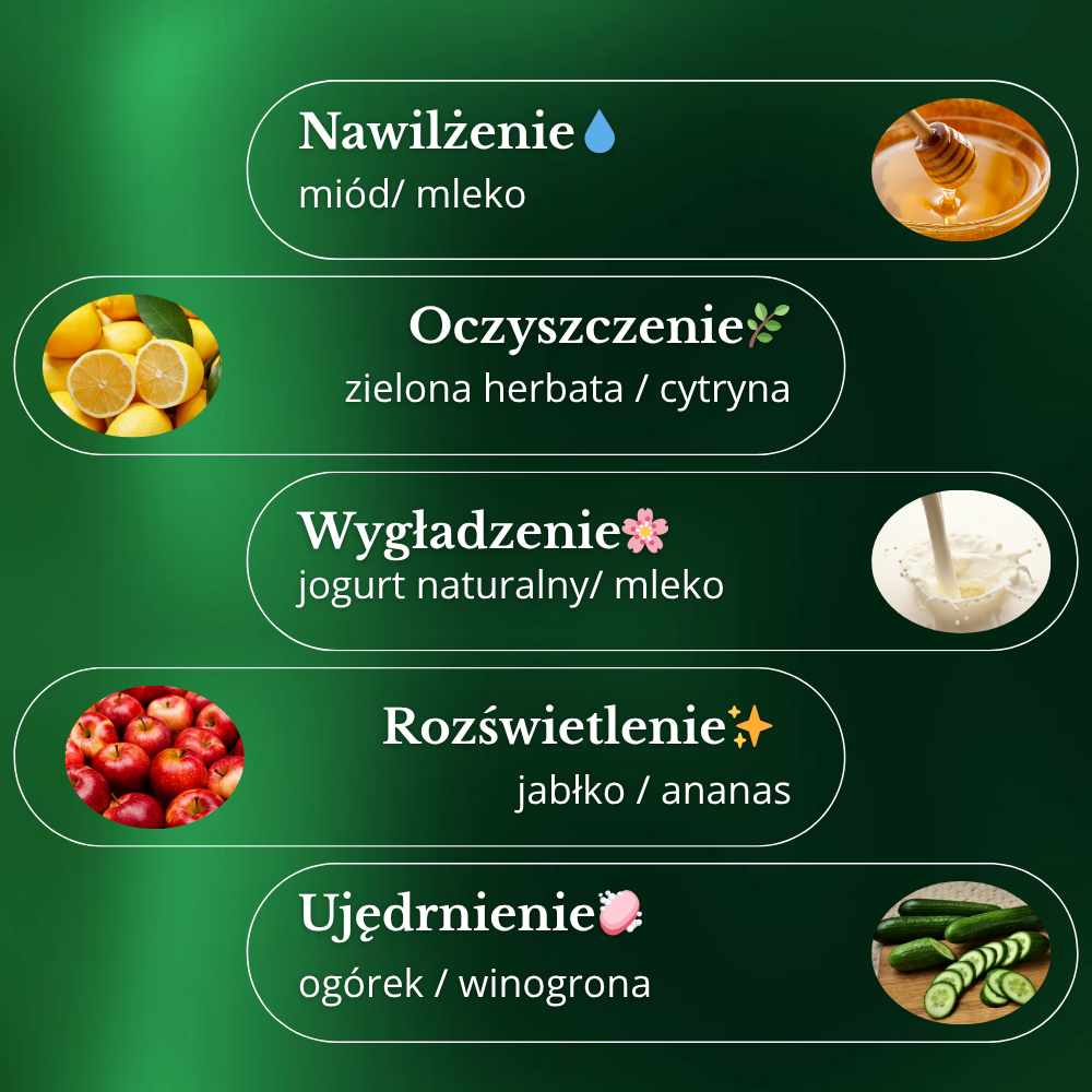 ● 20 ml składnika aktywnego (np. ogórek, miód, przecier owocowy itp.)